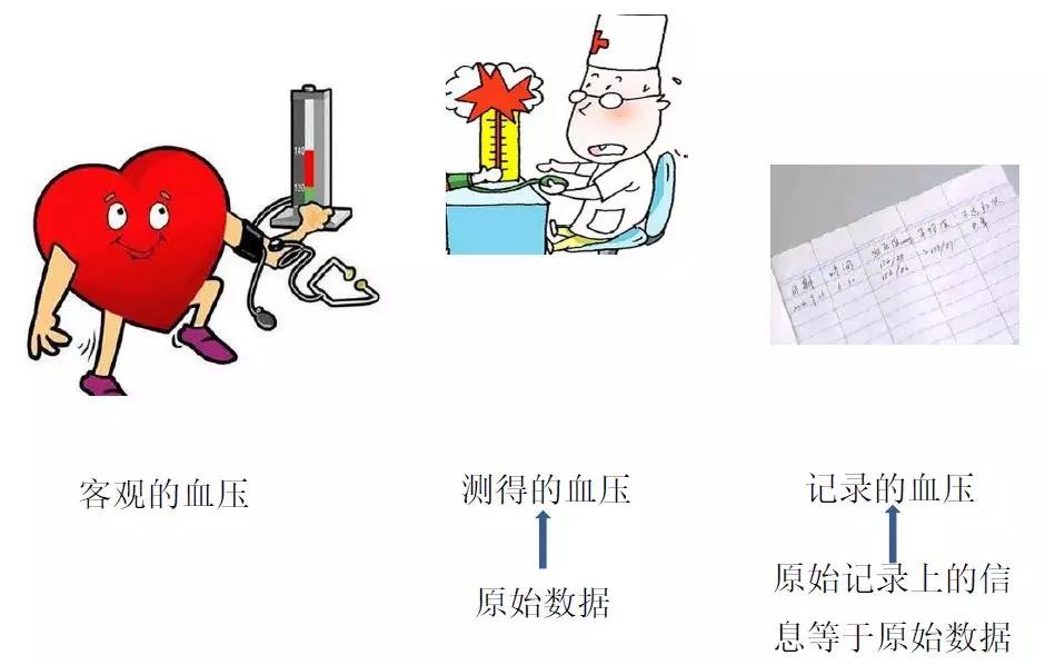 以临床试验为例,一个高血压患者来参加试验,他有血压增高和头晕。这些是客观事实,如何用数据来表示这个客观事实呢?